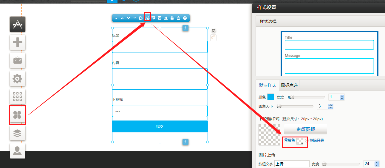 1. 在pc或手机编辑器-插件-留言-留言表单-现在下拉框设置项增加了背景色,如下图所示: