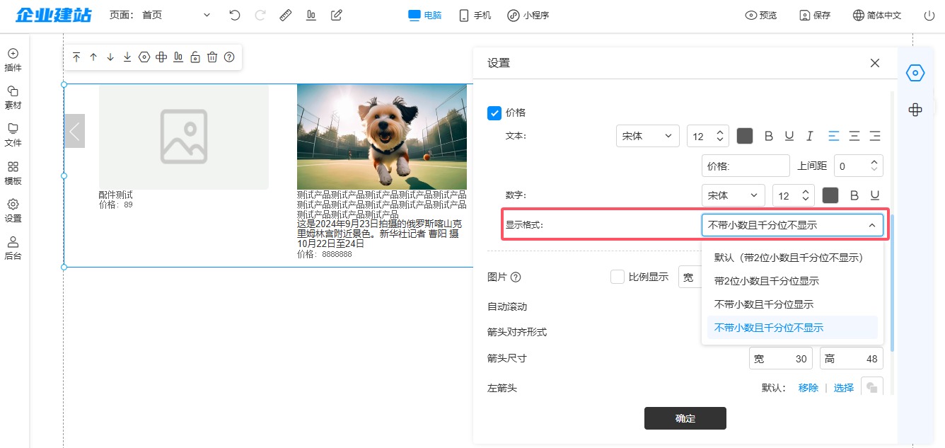 编辑界面:拖入effectimage — 设置 — 价格 — 显示格式